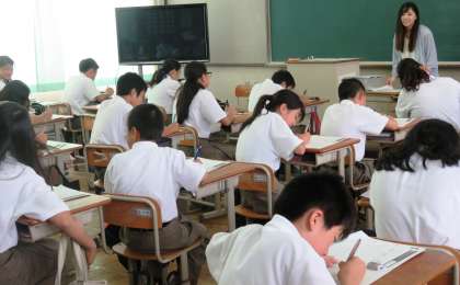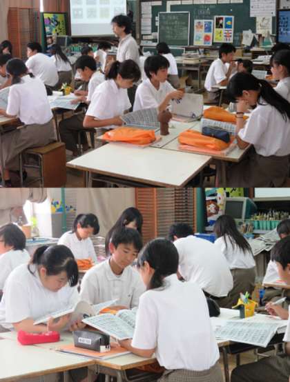 2限の授業の様子です。上から、2組 数学、3組 美術、4組 国語 です。