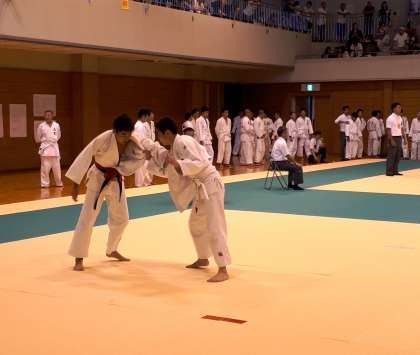 本日(7月22日)、京都武道センターにおいて、柔道の夏季大会が行われました。本校からは、2名出場しました。1名は初戦で1本勝ちで勝利し準決勝まで進みました。残念ながら準決勝で敗退しましたが、府下大会への出場となりました。1名は残念ながら初戦敗退となりました。