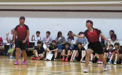 バドミントン部の個人戦予選(シングルス・ダブルス)の様子です。