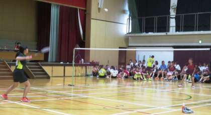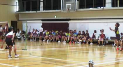 バドミントン部の個人戦予選(シングルス・ダブルス)の様子です。