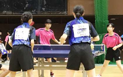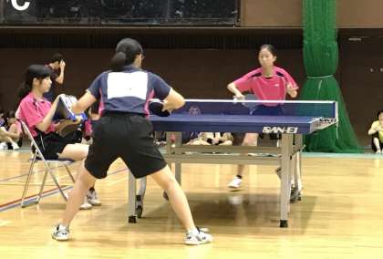 本日(7月23日)、ハンナリーズアリーナで卓球部の団体戦が行われました。女子は、初戦で西院中学校と対戦し、1−3で負けました。