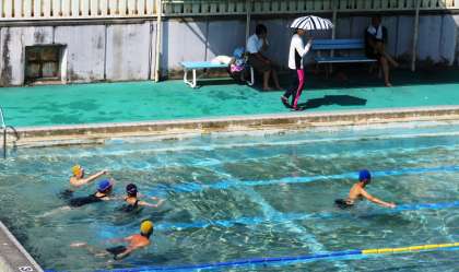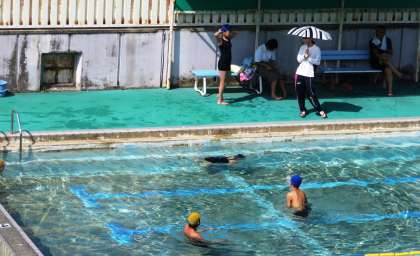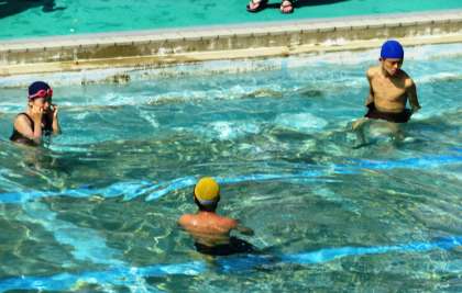 1組はサマースタディーの時間帯にプールに入っていました。