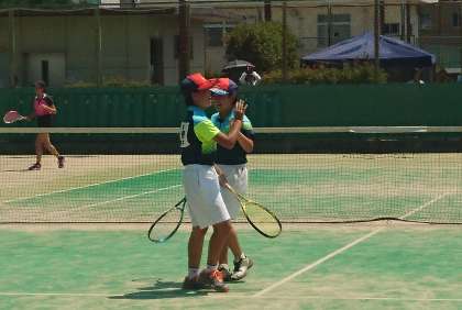 本日(7月24日)、府下大会出場をかけて、敗者復活2回戦が西院コートで行われました。接戦の末、4−3で勝利し、府下大会出場を決めました。おめでとう。暑い中、応援ありがとうございました。