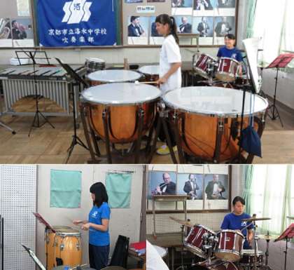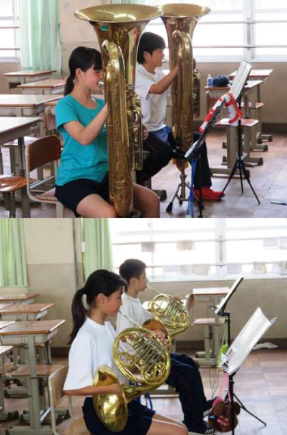吹奏楽部の様子です。28日の地域行事、8月9日の吹奏楽コンクールに向けて頑張っていました。