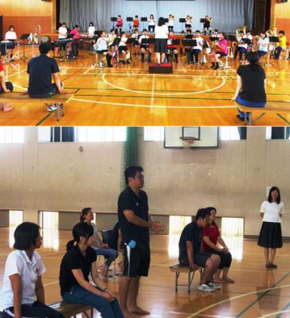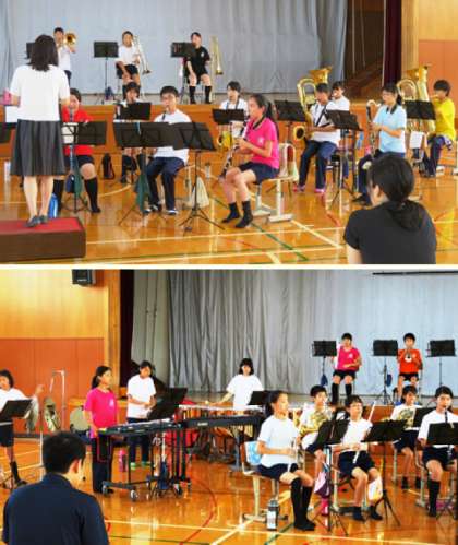 吹奏楽部の様子です。明日の本番を前に、体育館を使っての最終の練習が行われました。校内におられた先生方も参観されていました。