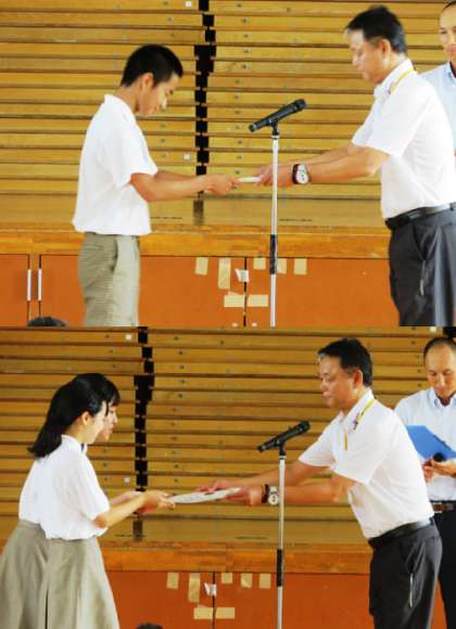 校歌斉唱の後、夏休み中の夏季大会およびコンクールの表彰(柔道 3位、京都府吹奏楽コンクール 金賞)が行われました。その後、校長先生、生徒会、生徒指導部の線形からの話と続きました。みんな元気に登校していました。校長先生からは、「夏休みの目標は達成できましたか。感動しましたか。」などの話の後、「学校祭が感動できるように頑張れ」とお話がありました。