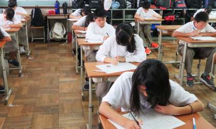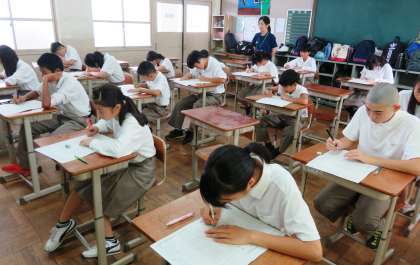 夏休み明けの課題テスト(国語)をしています。上から、1年、2年、3年です。
