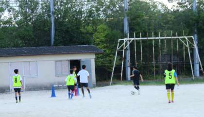サッカー部(上)、ソフトテニス部(下)の様子です。