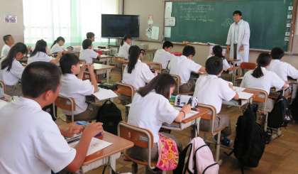 4限の授業の様子です。上から、2組 数学、3組 社会、4組 英語 です。