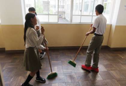 本日は放課後に代表専門委員会があるので昼休みの掃除をしました。また、本日の昼休みに予定されていました3年生のチャレンジ・ザ・スポーツは明日に変更になりました。