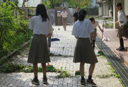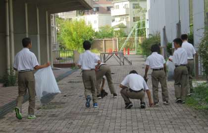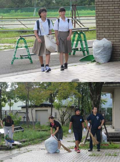 朝の様子です。朝から教職員が掃除をしていると、登校した生徒がお手伝いをしてくれました。助かりました。ありがとう。