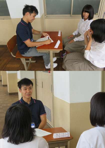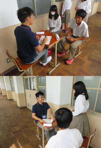 英語の時間にパフォーマンステストをしています。4限の2年4組の様子です。