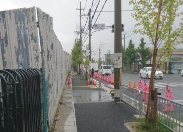 場所は、学校から納所方面の東側歩道で、「工事現場と歩道の境目にあるトタンが傾いている。」「電線がたれ下がっている。」です。他にもまだまだあるかもしれませんので、学校でも安全面についての注意をしましたが、各ご家庭でもご指導をお願いします。