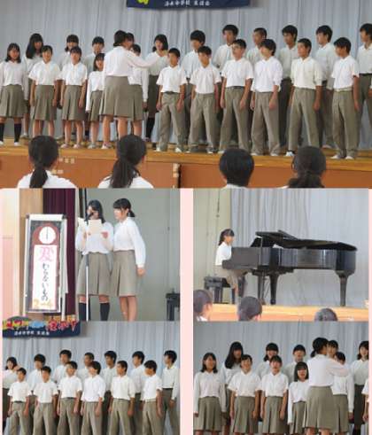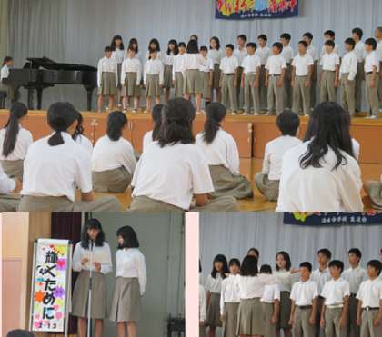 本日も6限後に合唱練習が行われました。合唱コンクールが13日(木)にせまり、どの学年も盛り上がりがピークに近づいてきました。2年生の様子です。全クラスが体育館に集まり、学年合唱やクラス発表の練習をしていました。