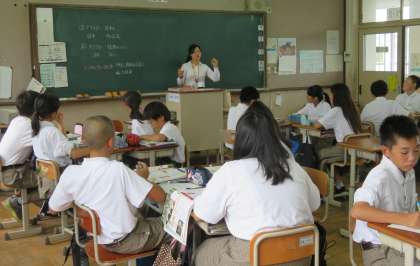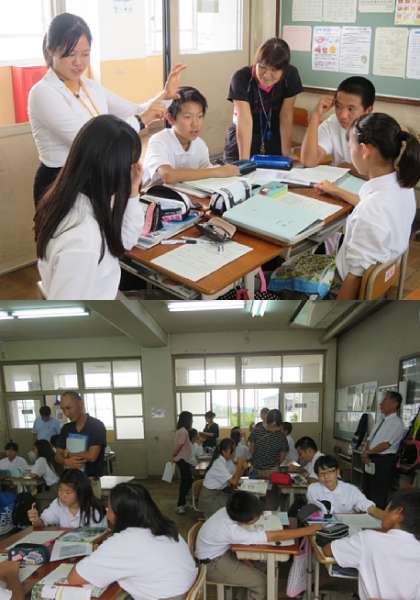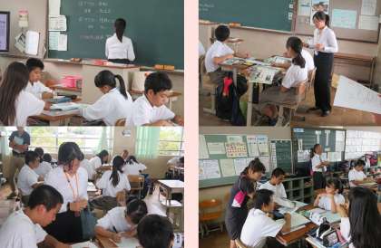 本日の6限、社会科の教育実習生の研究授業が、1年2組で行われました。研究授業の様子です。