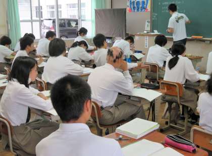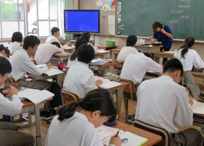 1限の授業の様子です。上から、2組 社会、3組 英語、4組 数学 です。