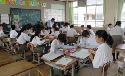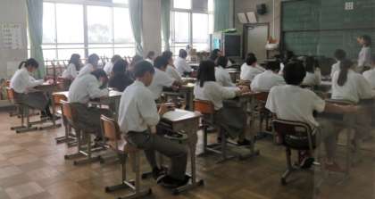 4限の授業の様子です。上から、2組 英語、3組 音楽、4組 理科 です。