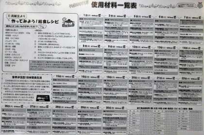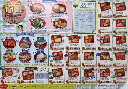 11月分の給食の申込みのお知らせを本日配布しました。申込み等の〆切が10月10日(水)です。ご希望の場合は、期日までに手続きをお願いします。1、2年が 5270円(17回分)、3年が5580円(18回分)です。