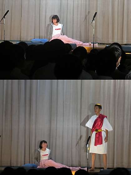 2年生の総合的な学習の発表(チャレンジ体験・「君たちはどう生きるか」)の様子です。