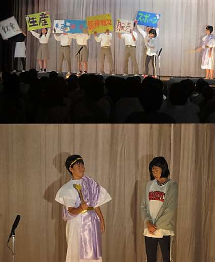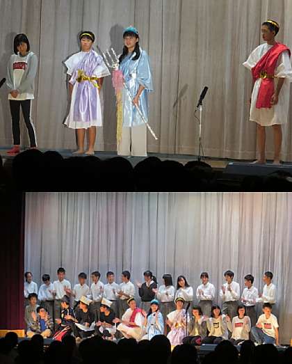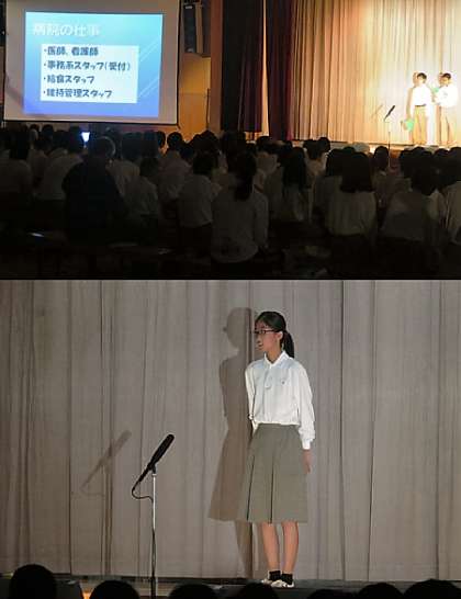 2年生の総合的な学習の発表(チャレンジ体験・「君たちはどう生きるか」)の様子です。