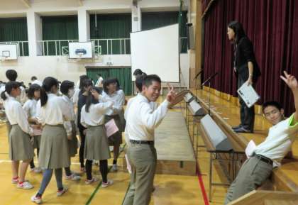 休憩時間の様子です。3年生は発表の準備をしています。