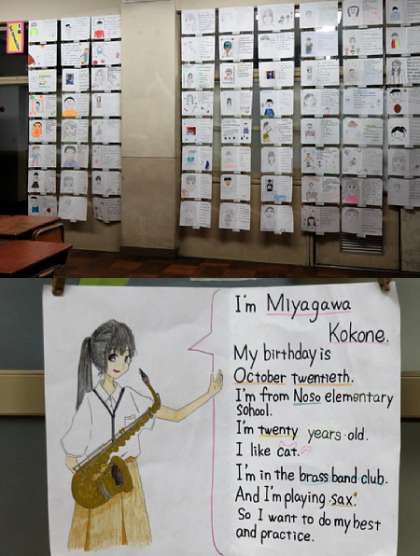 英語科の展示です。1年:Self Introduction 2年:My Dream 3年:School Trip