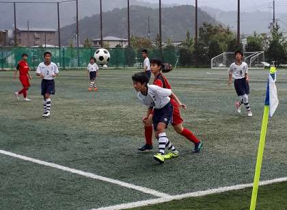 雨の中からのスタートでボールが滑り慣れるまで時間がかかりましたが、徐々に洛水中のペースで試合は進みました。