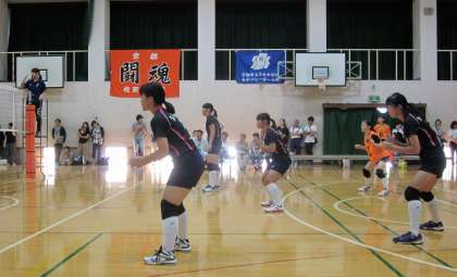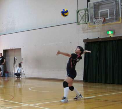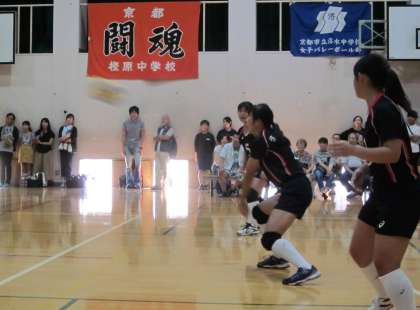 本日からバレーボール部の新人戦予選リーグが本校体育館で行われました。本校は、第1戦に洛南附属中学校、第2戦に樫原中学校と対戦しました。第1戦の洛南附属中学校との試合の様子です。