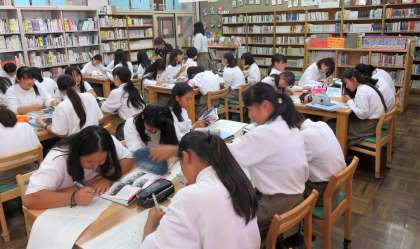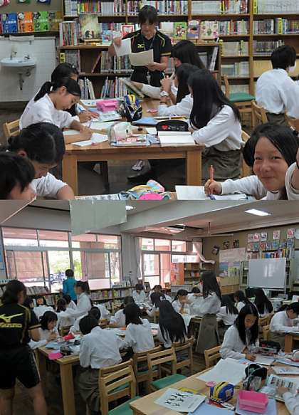本日の5限、体育の授業で1年生の女子は図書室で「体育理論」の授業をしていました。