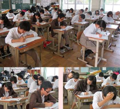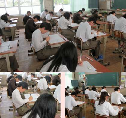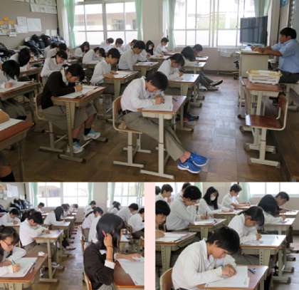 3年の6限の数学のテストの様子です。3教科のテストが終了しました。明日の5,6限に残りの2教科のテストが実施されます。