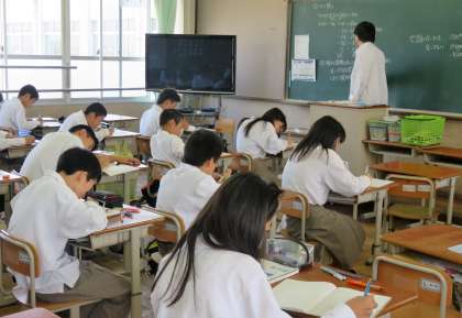 2限の授業の様子です。上から、2組 英語、3組 国語、4組 数学 です。