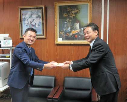 この度JRA京都競馬場様より、新しく物品(フレキシブル教材提示装置、フロアスクリーン、空気清浄機)を寄贈していただきました。本日、副場長様にお越しいただき、校長室で寄贈の目録をいただきました。本当にありがとうございます。大切に使わせていただきます。