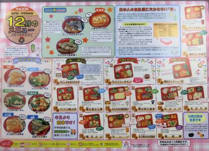 12月分の給食の申込みのお知らせを本日配布しました。申込み等の〆切が11月9日(金)です。ご希望の場合は、期日までに手続きをお願いします。全学年、3720円(12回分)です。