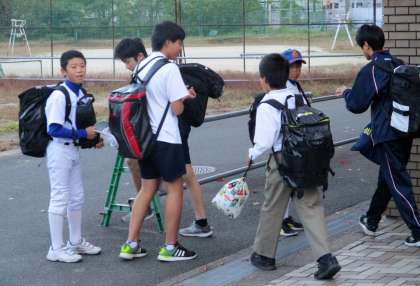 下校の様子です。完全下校の時間が早くなりました。帰宅後は、手洗いやうがいをきちんとしましょう。