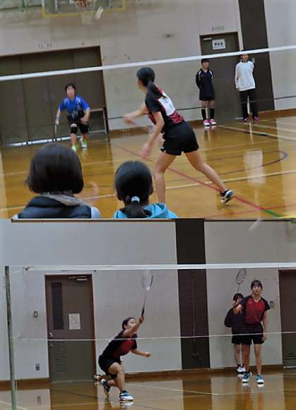 本日(11月4日)、バドミントン部の予選が嘉楽中学校で行われました。はじめに、団体戦が行われ、第1戦は、西陵中学校と対戦し、3−0で勝ちました。