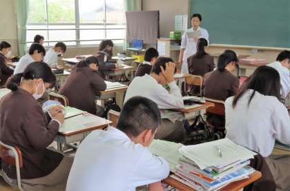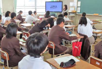 1限の道徳の授業の様子です。上から、2組、3組、4組 です。