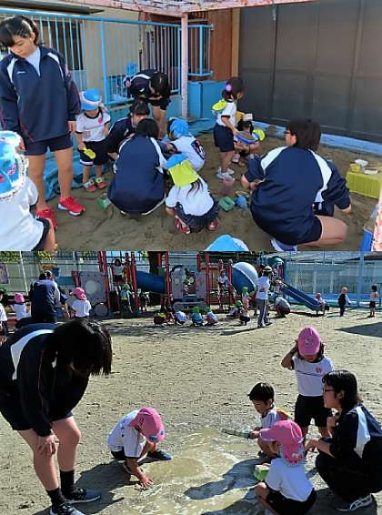 幼児とのふれあい体験活動の様子です。最後に、保育園の先生に挨拶をして、体験学習は終了しました。保育園の皆様、お世話になりました。ありがとうございました。
