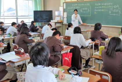 2限の授業の様子です。上から、2組、3組 体育、4組 理科 です。