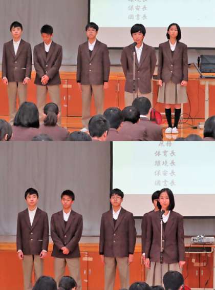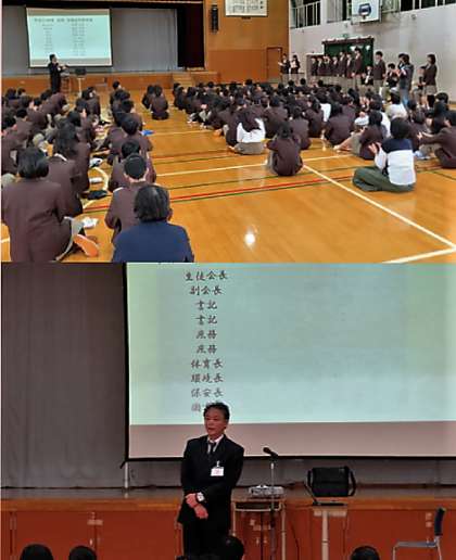 新専門委員長からの所信表明と諸連絡、校長先生からの激励の様子です。