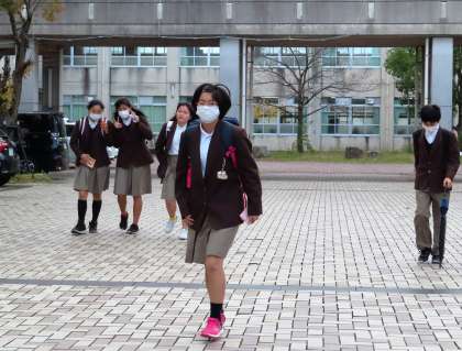 下校の様子です。帰宅後は、手洗いやうがいをきちんとしましょう。また、テスト前です計画的な学習と健康管理には十分注意してください。