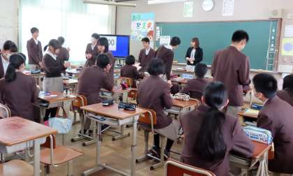 1限の授業の様子です。上から、2組 社会、3組 英語、4組 数学 です。