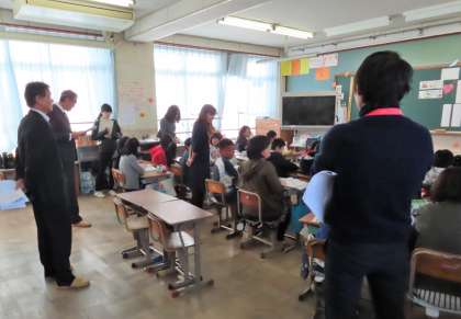 今回で3回目の小中合同研修会を納所小学校で、「小中9年間の育ちの見通しをもって、学習活動を進めていけるようにする」ことをねらいの1つに実施しました。研修会は、公開授業を参観、分散会にて研究協議を行いました。写真は授業の様子と全体会で分散会の報告の様子です。