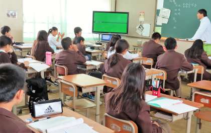 2限の授業の様子です。上から、2組 数学、3組 美術、4組 理科 です。