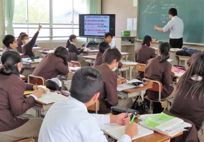 2限の授業の様子です。上から、2組 英語、3組 数学、4組 社会 です。