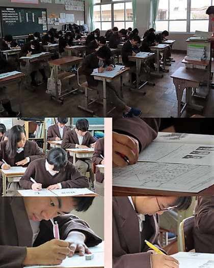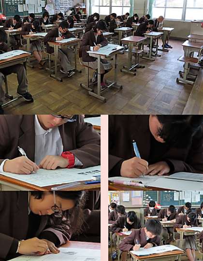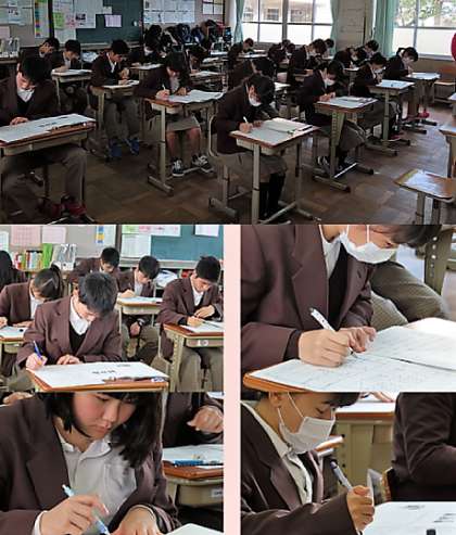 2限の3年生の音楽のテストの様子です。上から、2組、3組、4組 です。