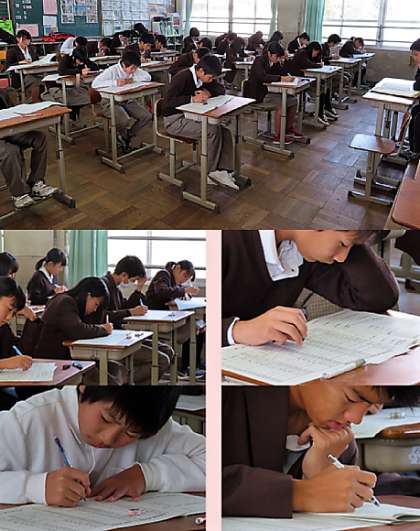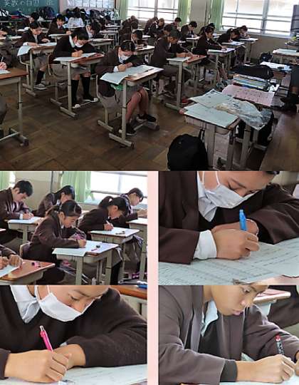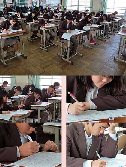 3限の2年生の数学のテストの様子です。上から、2組、3組、4組 です。