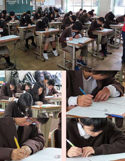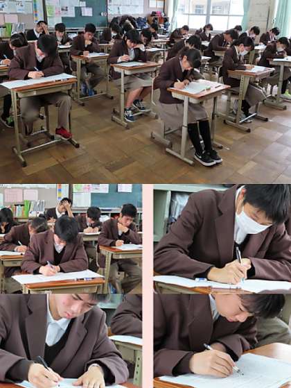 2限の3年生の英語のテストの様子です。上から、2組、3組、4組 です。