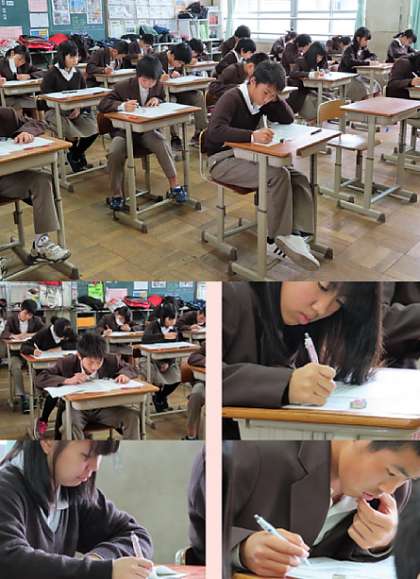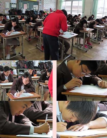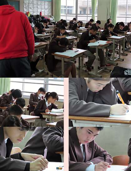 3限の2年生の社会のテストの様子です。上から、2組、3組、4組 です。
