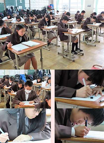 4限の1年生の保健体育のテストの様子です。上から、2組、3組、4組 です。テストが全て終了しました。お疲れ様でした。