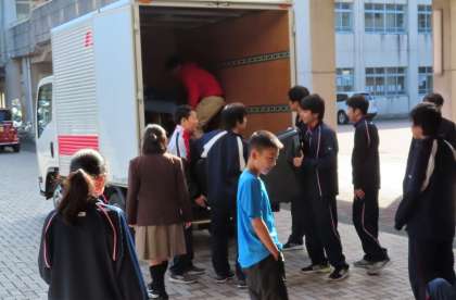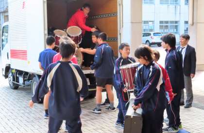 本日、卓球部の子どもたちが、少し練習を中断して、吹奏楽部の楽器を運んでくれました。